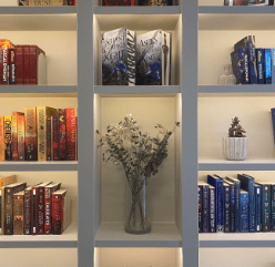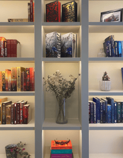 She built her own floor-to-ceiling bookshelf because store bought ones weren't dramatic enough.